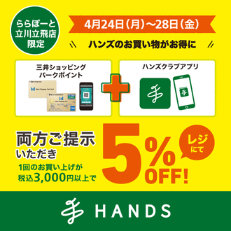 こんにちは!本日は、【ハンズららぽーと立川立飛店開業10周年記念】お得なキャンペーンのお知らせです!+---+---+---+---+---+--…...
